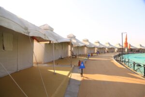 પ્રવાસીઓ માટે અતિઆધુનિક AC ટેન્ટ સિટી જેવી કે દરબારી ટેન્ટ, પ્રીમિયમ ટેન્ટ, ડિલક્સ ટેન્ટ સહિતના કુલ ૨૧ ટેન્ટ અને અંદાજિત ૧૦૦થી વધુ બેડની AC ડોર્મિટરીની સુવિધા