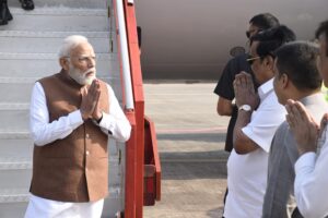 ડેડીયાપાડા ખાતે ભગવાન બિરસા મુંડાની ૧૫૦મી જન્મજયંતિ “જનજાતીય ગૌરવ દિવસ” ની રાષ્ટ્રીય કક્ષાની ઉજવણીમાં પધારેલા વડાપ્રધાનને આવકારતા રાજ્યના જનપ્રતિનિધિઓ*